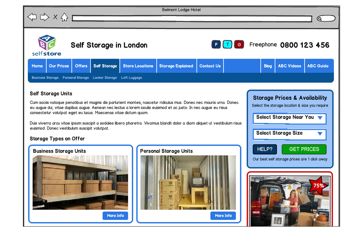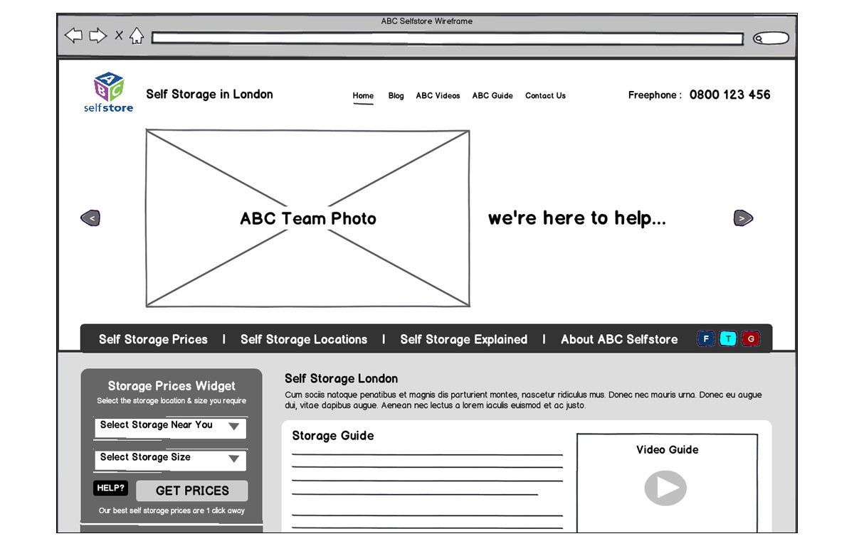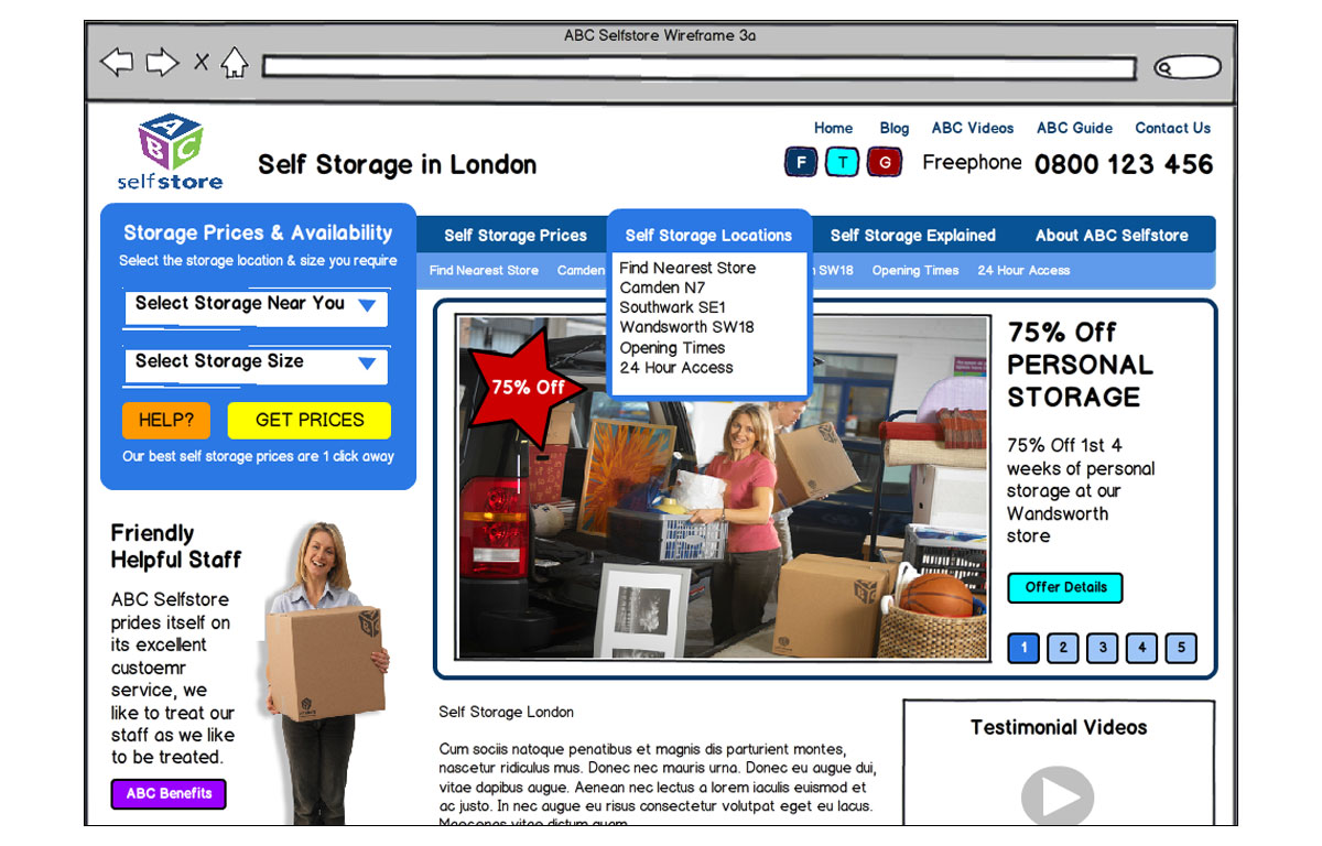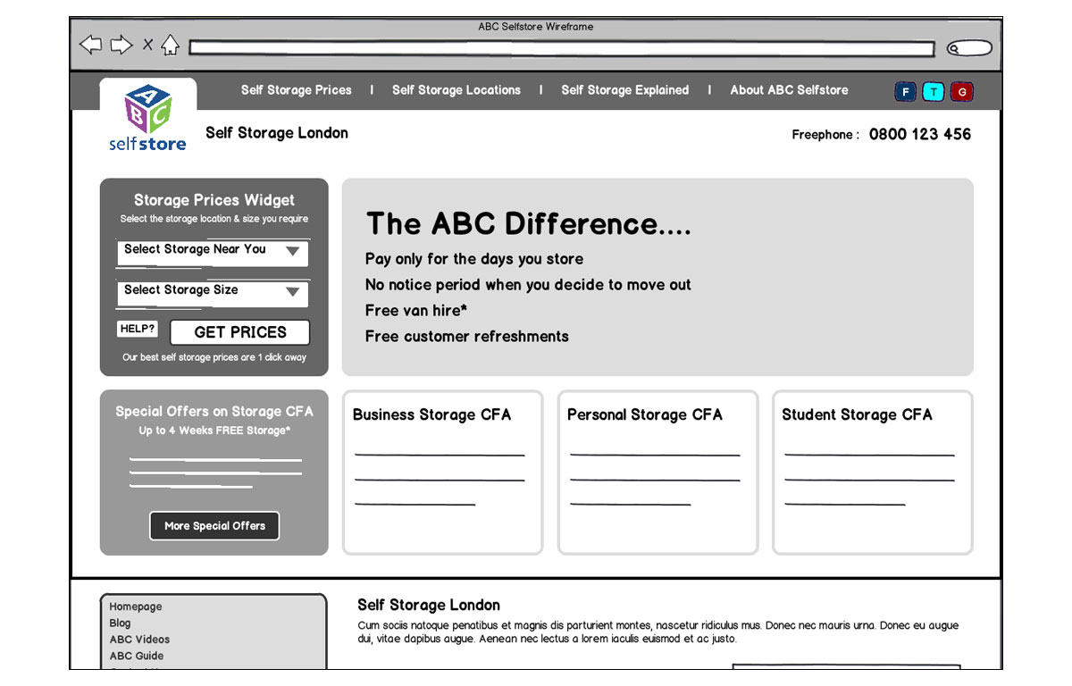 Wire-frames created for the redesign of the ABC Selfstore website