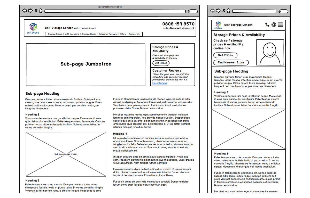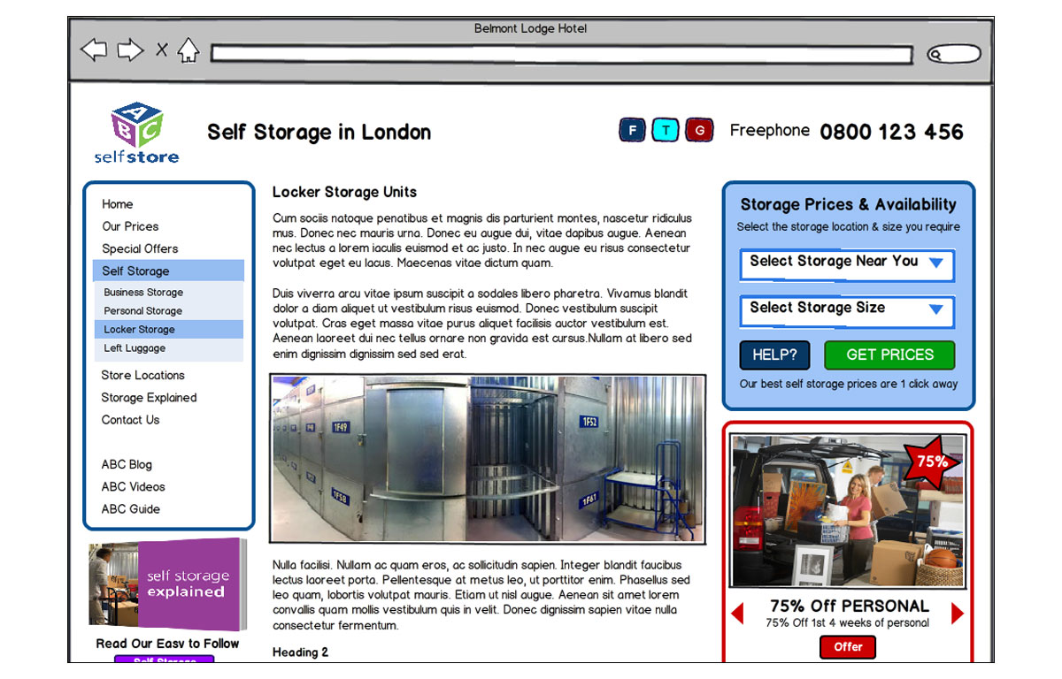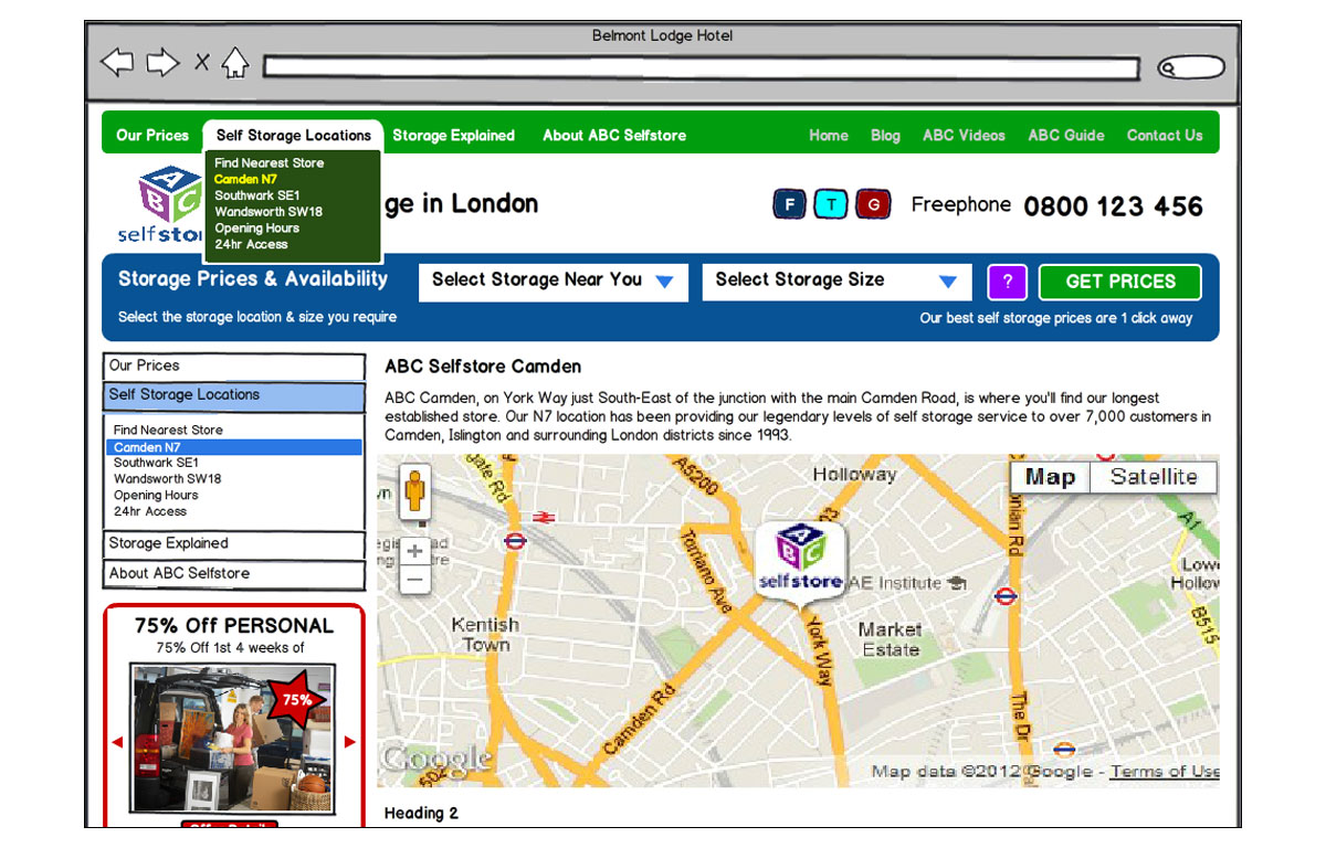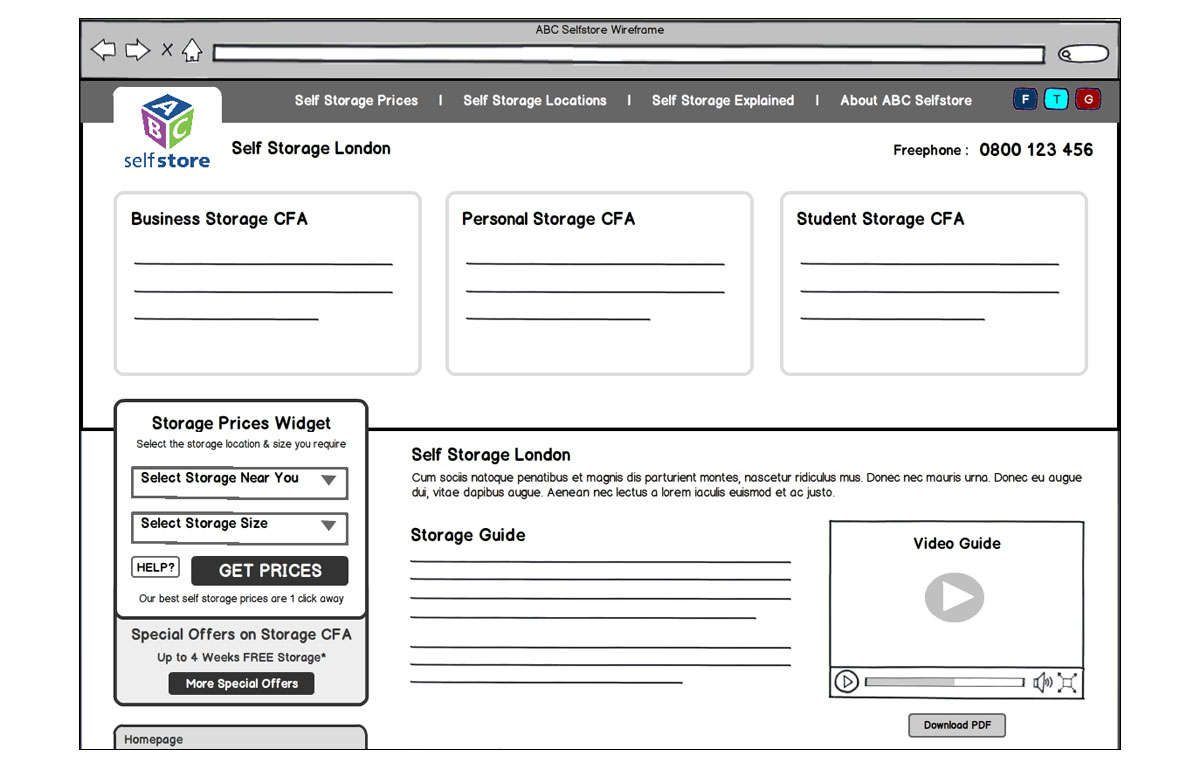 Wire-frames created for the redesign of the ABC Selfstore website