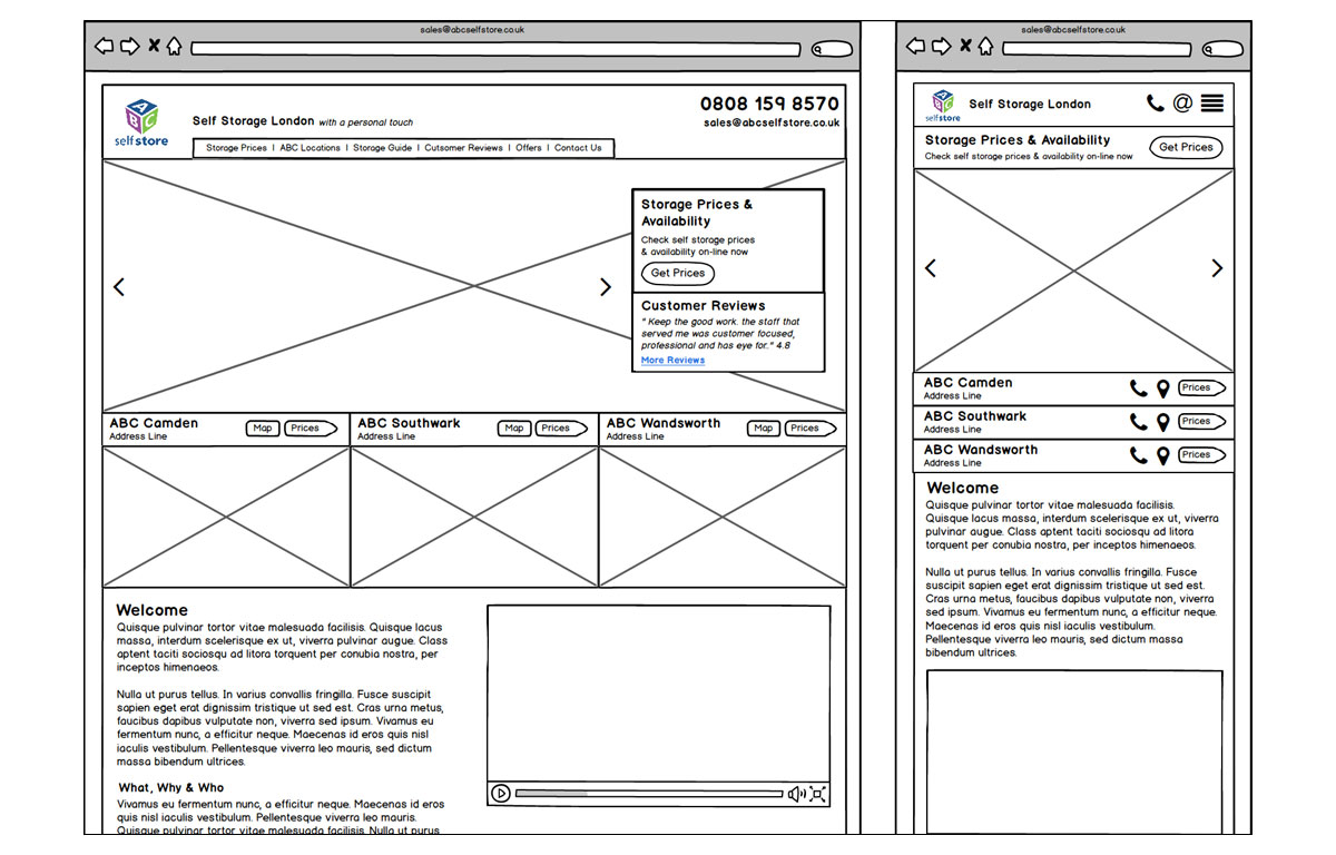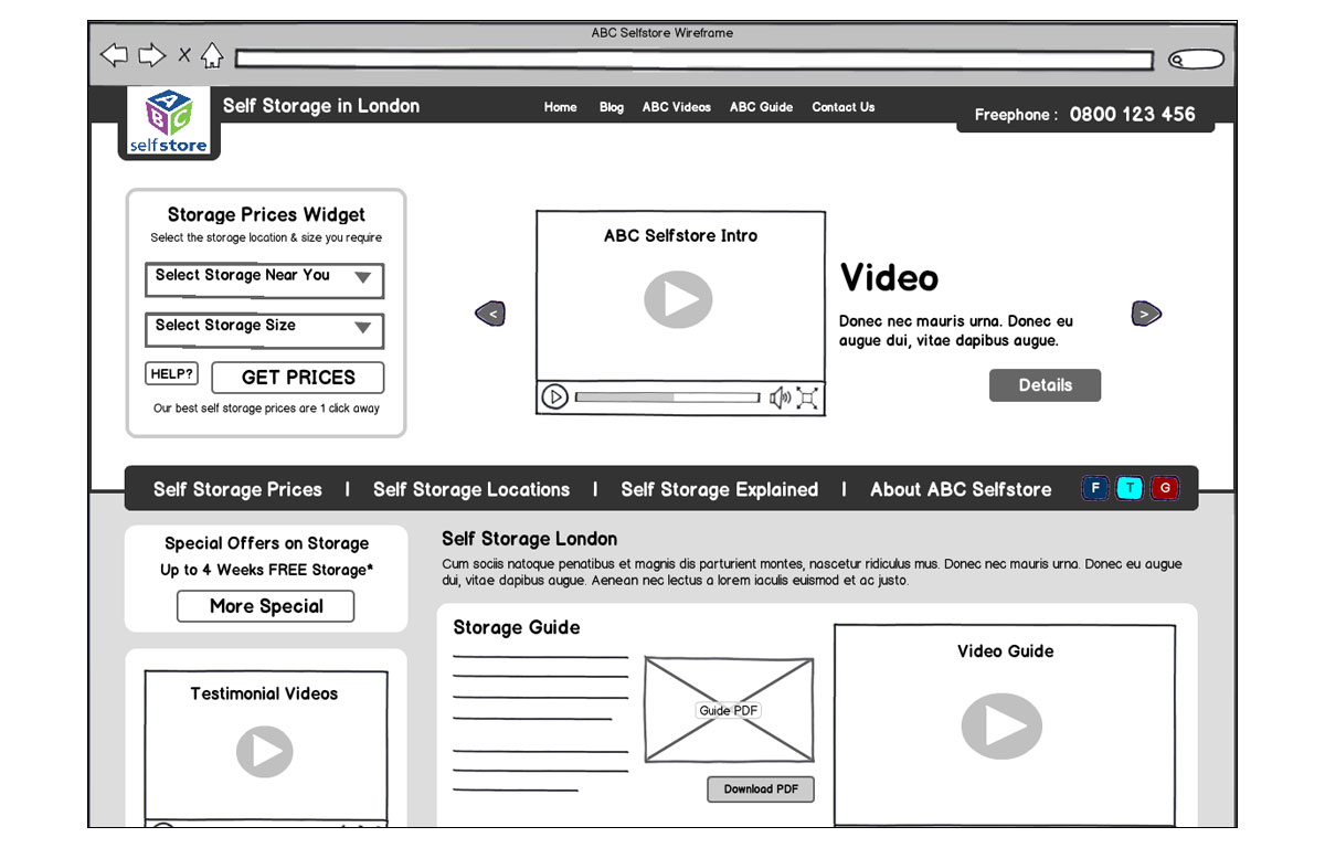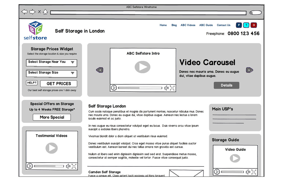 See below for a selection wire-frames we produced for various clients when starting the design process of their websites:
